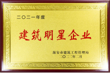 2021年,海安建筑業成績單金光熠熠:全年完成建筑業施工產值1901億元,在海安入庫稅金17.2億元。其中蘇中建設產值超750億元,地方納稅超7億元,同時為家鄉貢獻承建及參建魯班獎4項、詹天佑獎優秀住宅小區金獎3項、安裝之星獎1項,彰顯了家鄉龍頭建筑企業的責任擔當。