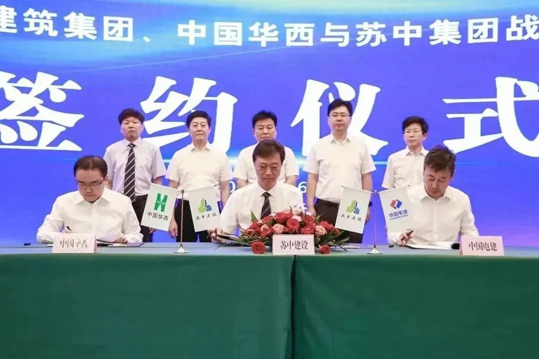 在與會嘉賓和全體蘇中人的共同見證下,蘇中集團(tuán)總裁陳永明與中電建建筑集團(tuán)、華西集團(tuán)分別簽署了戰(zhàn)略合作協(xié)議,蘇中集團(tuán)將通過夯實(shí)與央企和國企的合作,進(jìn)一步擴(kuò)大增量,開拓市場,在轉(zhuǎn)型升級的進(jìn)程中邁出更加穩(wěn)健而堅(jiān)實(shí)的步伐。